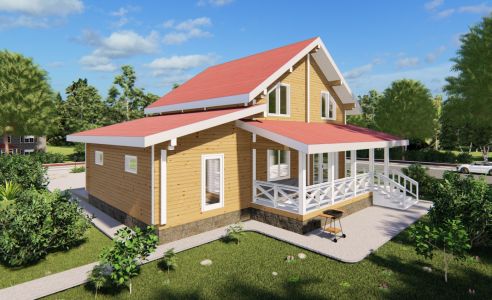 Огромный и очень презентабельный двухэтажный дом из профилированного бруса, общей площадью 157 кв. м. Впечатляющее разнообразие комнат, а также наличие зимней и летней веранд обеспечат комфортное проживание даже очень большой семьи. Этот дом из бруса приятно порадует как продуманностью внутренней планировки, так и элегантностью внешних форм.