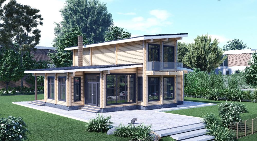 Огромный и очень презентабельный двухэтажный дом из профилированного бруса, общей площадью 200 кв. м. Впечатляющее разнообразие комнат, а также наличие зимней и летней веранд обеспечат комфортное проживание даже очень большой семьи. Этот дом из бруса приятно порадует как продуманностью внутренней планировки, так и элегантностью внешних форм.