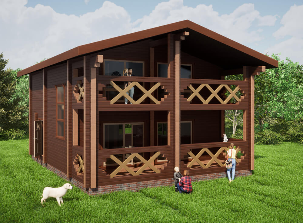 Добротный двухэтажный дом из профилированного бруса — отличное соотношение цены и качества. Архитектура дома впитала в себя настроения минимализма и современные тенденции. Большие окна дают много естественного света, а удобная планировка позволит с комфортом разместиться даже очень большой семье.