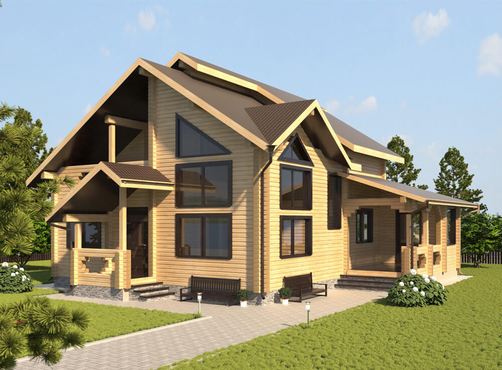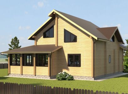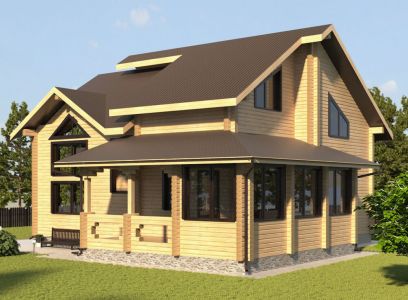 Огромный и очень презентабельный двухэтажный дом из профилированного бруса, общей площадью 200 кв. м. Впечатляющее разнообразие комнат, а также наличие зимней и летней веранд обеспечат комфортное проживание даже очень большой семьи. Этот дом из бруса приятно порадует как продуманностью внутренней планировки, так и элегантностью внешних форм.
